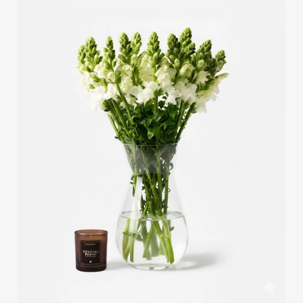 Introducing White Snapdragon – the flower arrangement that brings elegance and charm in every petal. Known for its delicate, tall spikes of white blooms, the Snapdragon is a symbol of strength, grace, and admiration. Whether you’re sending it as a gift or treating yourself to a timeless beauty, this arrangement will add a sophisticated touch to any room and any occasion